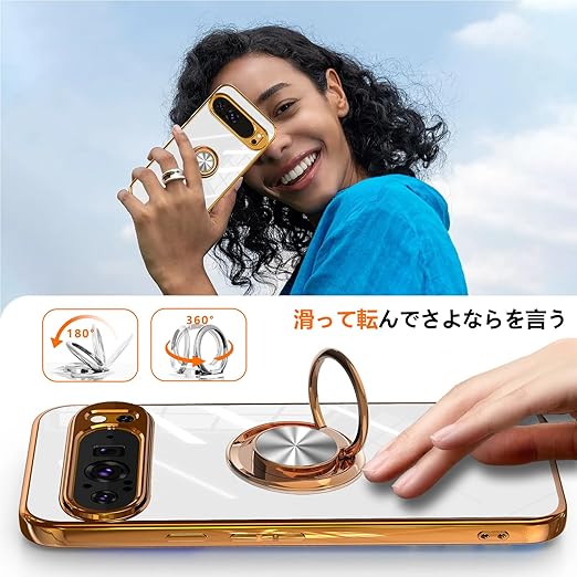【リング付き機能】:ケースを横置きにするとスタンド機能になり、持たず動画鑑賞などを楽しむことができます;リングは360度回転可能、180角度調節可能;一指着る式で、指がリングに通り抜け、片手で携帯を操作でき、落下防止します