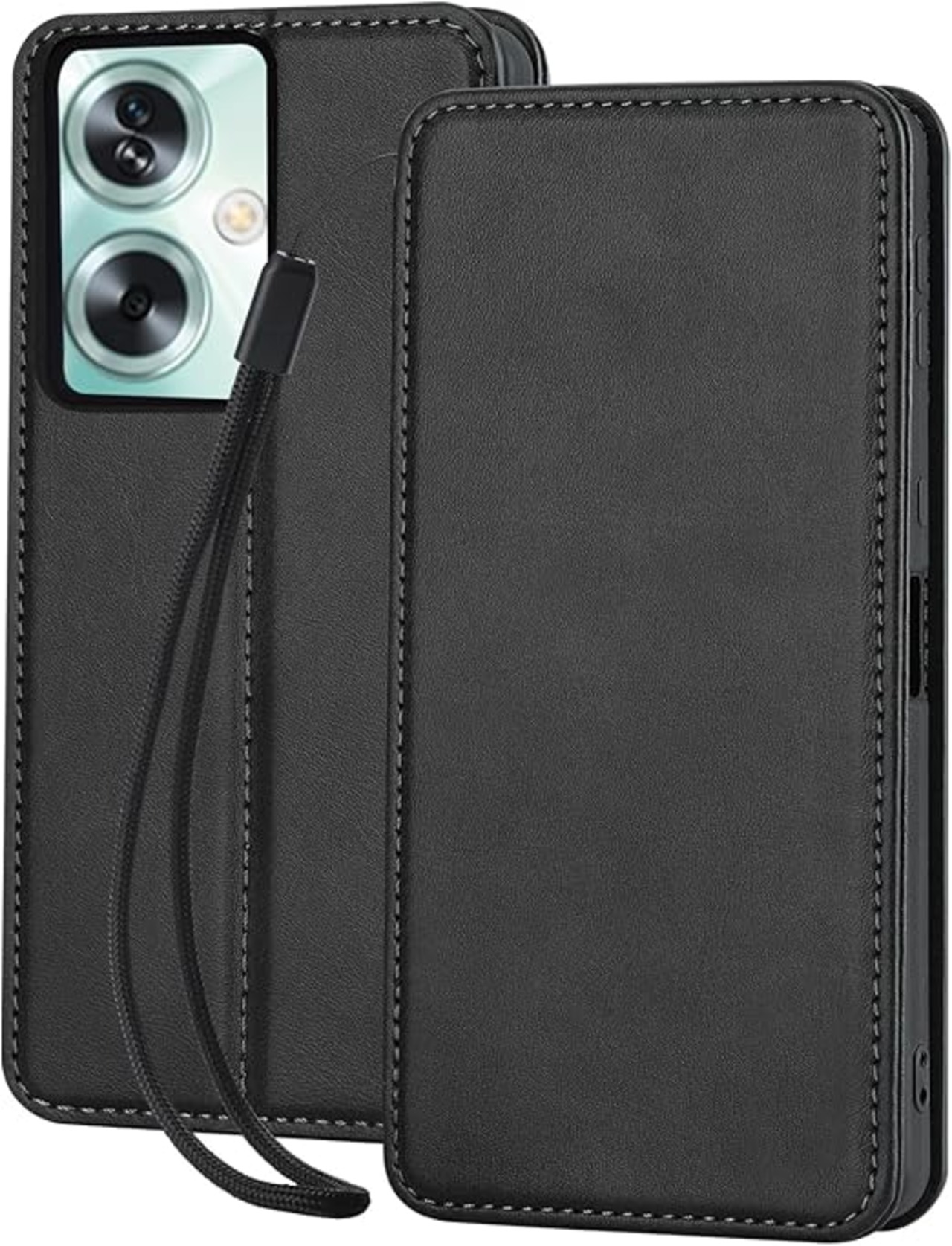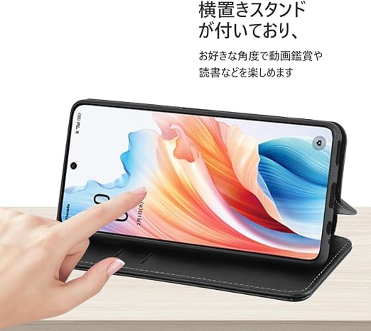 OPPO A79 5G ケース 手帳型 wangChuan オッポ A79 5G 手帳型ケース レザーケースカード収納 内蔵マグネット式(携帯ストラップ付き) ブラック a