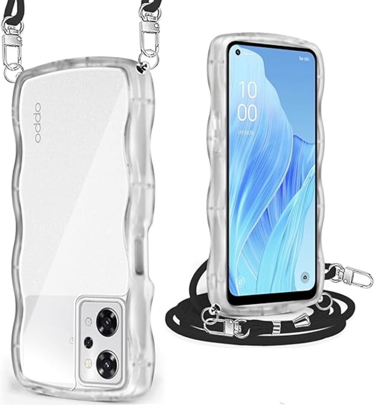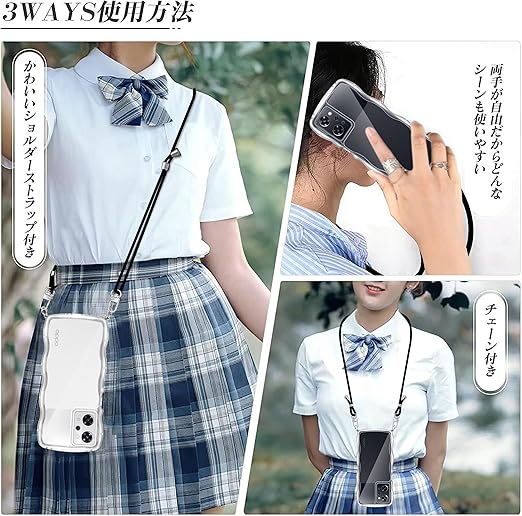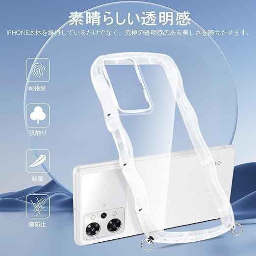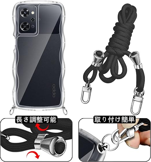 OPPO Reno9 A/OPPO Reno7 A ケース クリア ショルダー OPG04 カバー うねうね 透明 人気 かわいい 耐衝撃 スマホケース 首かけ 肩掛け 薄型 軽量 TPU ストラップ付き 取り外し可能 長さ調整可能 ワイヤレス充電対応(透明) a