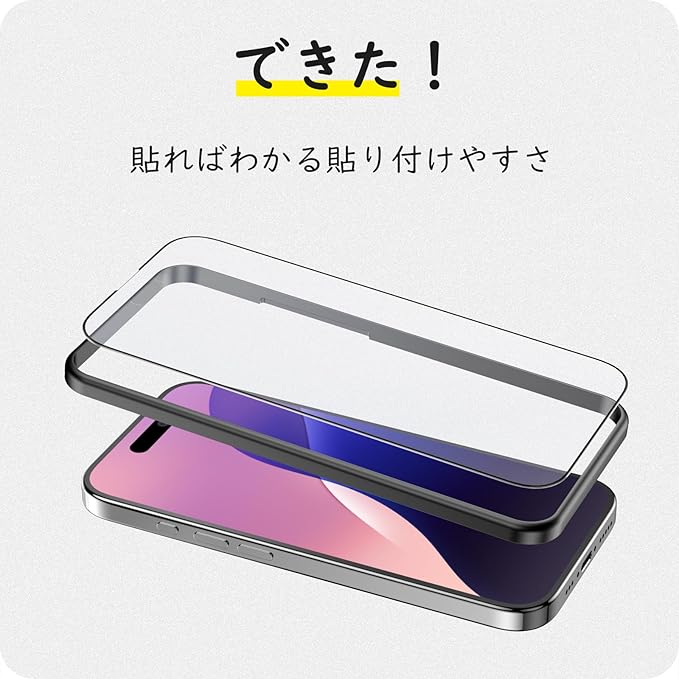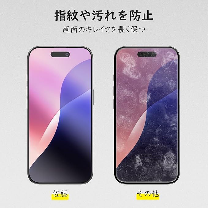 【佐藤ショップ】Phone 16 Pro 用 アンチグレアフィルム さらさら感 穴なし 全画面保護 指紋防止 ゲーマー向き 強化ガラス 硬度9H 高透過率 気泡ゼロ 飛散防止 ガイド枠付き a