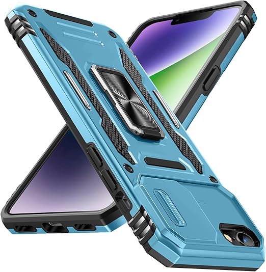 iPhone SE3 SE2 SE 8 7 ケース リング付き 耐衝撃 pc+tpu 車載ホルダー対応 軽量 薄型 擦り傷防止 取り出し易い 360°回転 スタンド機能 リング 携帯カバー ライトブルーLR-10-SE3-04 a