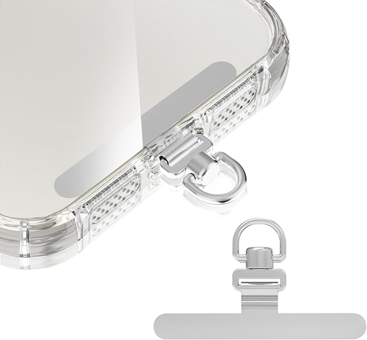 Heptour スマホ ストラップホルダー 極薄0.2mm 浮きにくい折り曲がれ設計 ステンレス製 携帯ストラップホルダー 360度回転可能 薄型 丈夫 スマホケースに挟む 充電影響なし iphone android 全機種対応 落下紛失防止 (シルバー) a