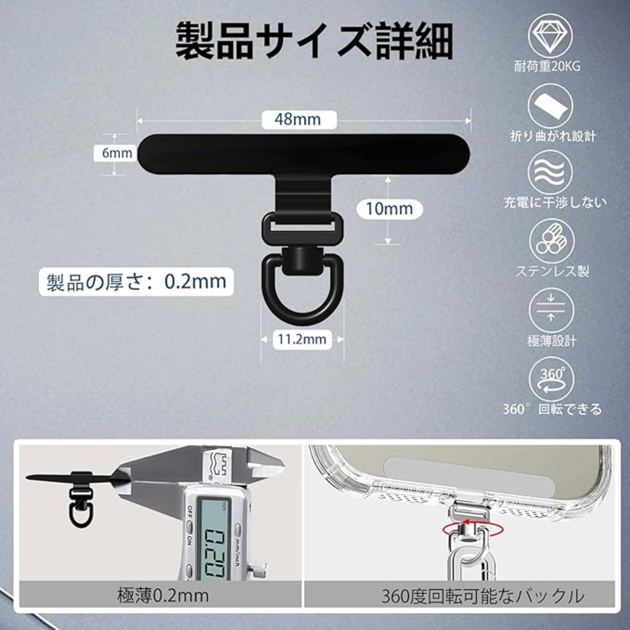 【極薄設計&全機種対応】このスマホストラップホルダーは、業界最薄の0.2mmの厚さを実現。スマホケースに挟んでも浮き上がらず、快適な使用感を提供します。対応機種:SMART PHONE(スマートフォン)各種対応iPhone、Samsung、Huawe
