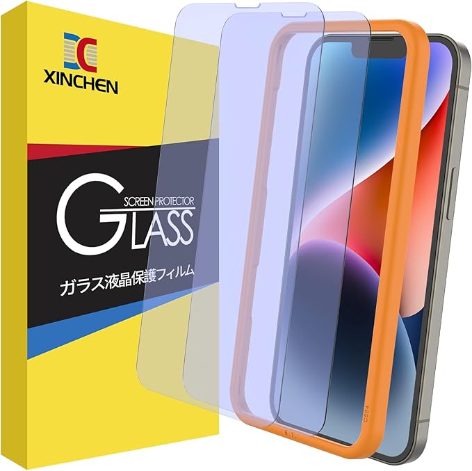 【ブルーライトカット】XINCHEN ガラスフィルム iPhone 16e / 14 / iPhone13 / iPhone13 Pro 用 全面保護フィルム 目の疲れ軽減 視力を保護 ガイド枠付き(6.1インチ アイフォン16e / 14 / 13 / 13 Pro 用) a