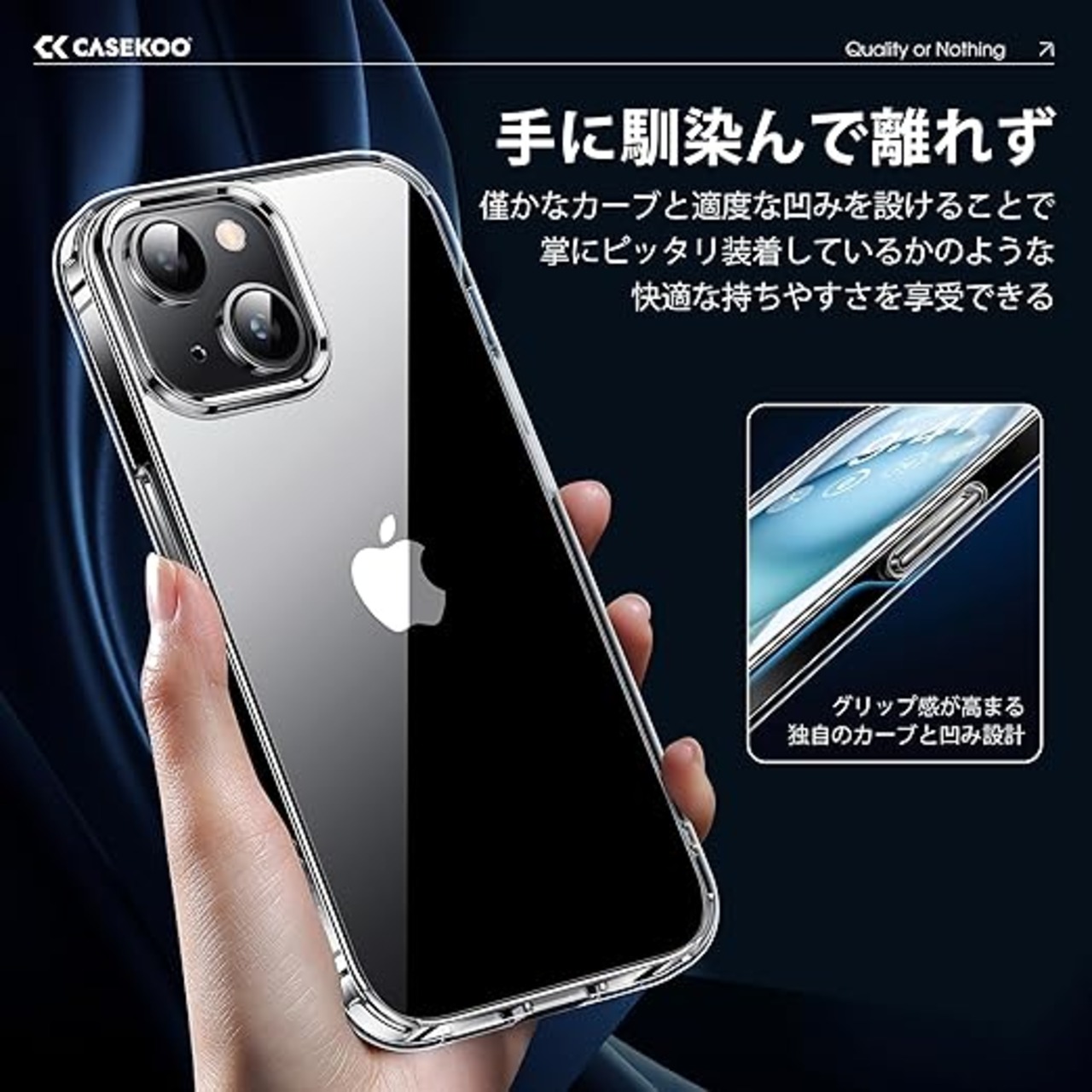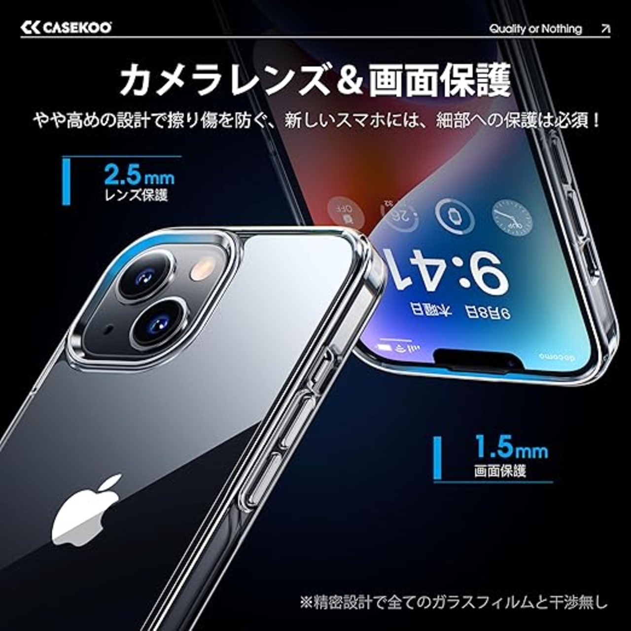 【極々透明感・2025年革新耐黄変技術】CASEKOO iPhone14 / 13 用 ケース クリア 耐衝撃 米軍MIL規格 耐久性 カバー ストラップホール付き ワイヤレス充電対応 アイフォン14 / 13用 携帯カバー 6.1 インチ ケース(クリア) a