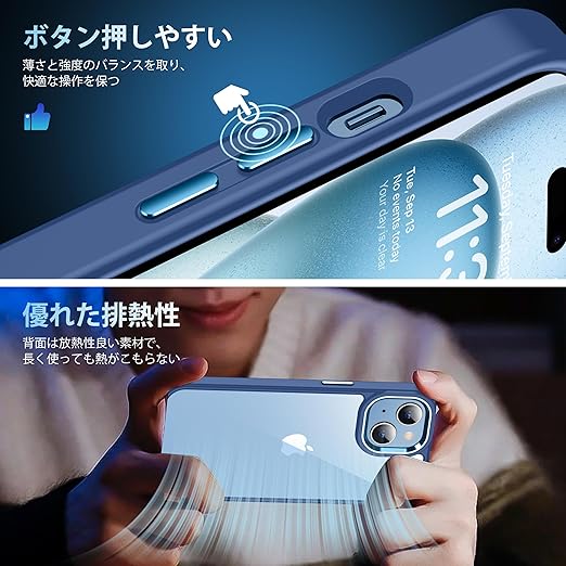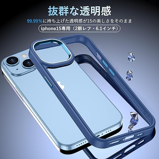 【高級感漂う・透明感抜群】 99.99%に持ち上げた透明感がiPhone15の美しさをそのまま。厳選した高透明度、更に耐黄変に強い特殊なポリカーボネート素材を採用、指紋がつきにくい・黄ばんでなく正真正銘のクリア!本来の崇高な美しさと高級感を損なわなく、いつ
