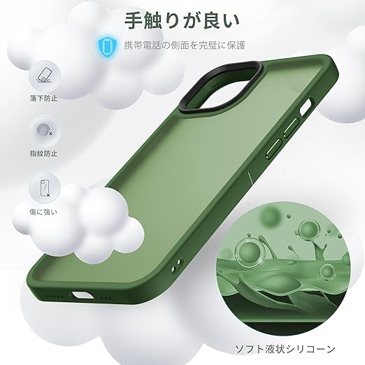 Anqrp iPhone 14 Plus 用 ケース 半透明 耐衝撃 滑り止め 米軍MIL規格 指紋防止 マットケース ストラップホール付き ワイヤレス充電対応 スマホケース アイフォン 14 Plus カバー 6.7インチ グリーン a