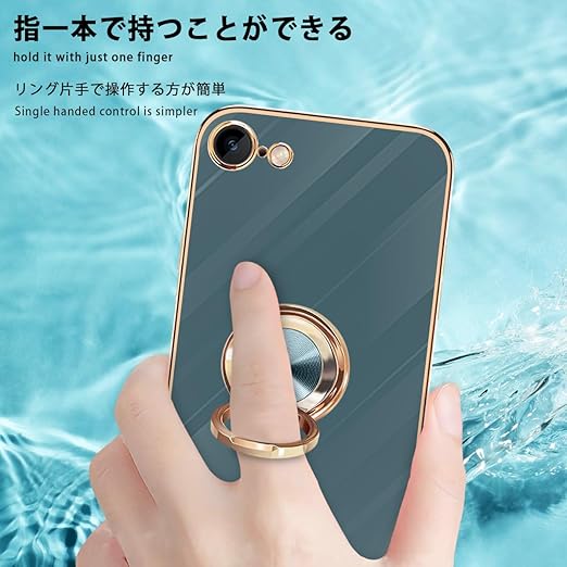 iPhone SE ケース iPhone第3世代 ケース iPhone第2世代 ケース iPhone8/7 ケース リング 耐衝撃 360°回転 スタンド機能 車載ホルダー対応 アイフォン SE3/SE2 ケース 一体型 携帯ケース 保護カバー レンズ保護 ストラップホール付き 4.7インチ (グレー) a
