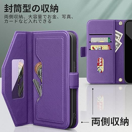 NODALA iPhone 16e ケース 手帳型 アイフォン16e スマホケース 財布型 ショルダー あいふぉん16e 携帯ケース 肩掛け 斜めがけ カバー 手帳型 小銭入れ カード収納 ロングストラップ 長さ調節可能 ミラー付き女性 おしゃれ 横置 ステント機能 折りたたみ 耐衝撃 PUレザー パープル a