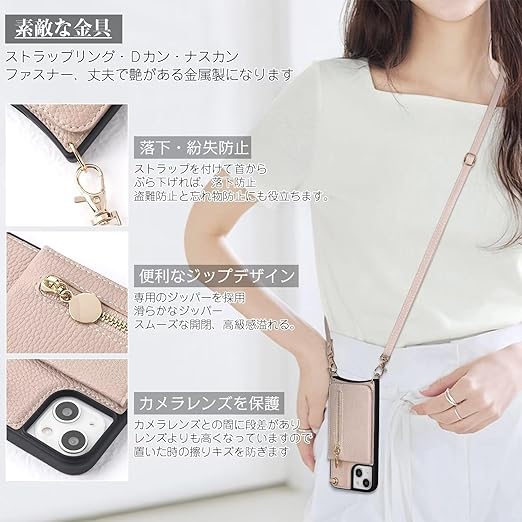 【安心感あり】ケースには下に二つのストラップホール、上に一つのリングが配備して、ショルダーストラップは調節可能なデザインが施され、お