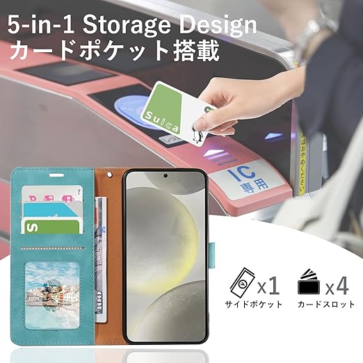 【財布機能】このiPhone 16E 用財布ケース内側には4つのカード入れと1つの現金ポケットがつき、ス