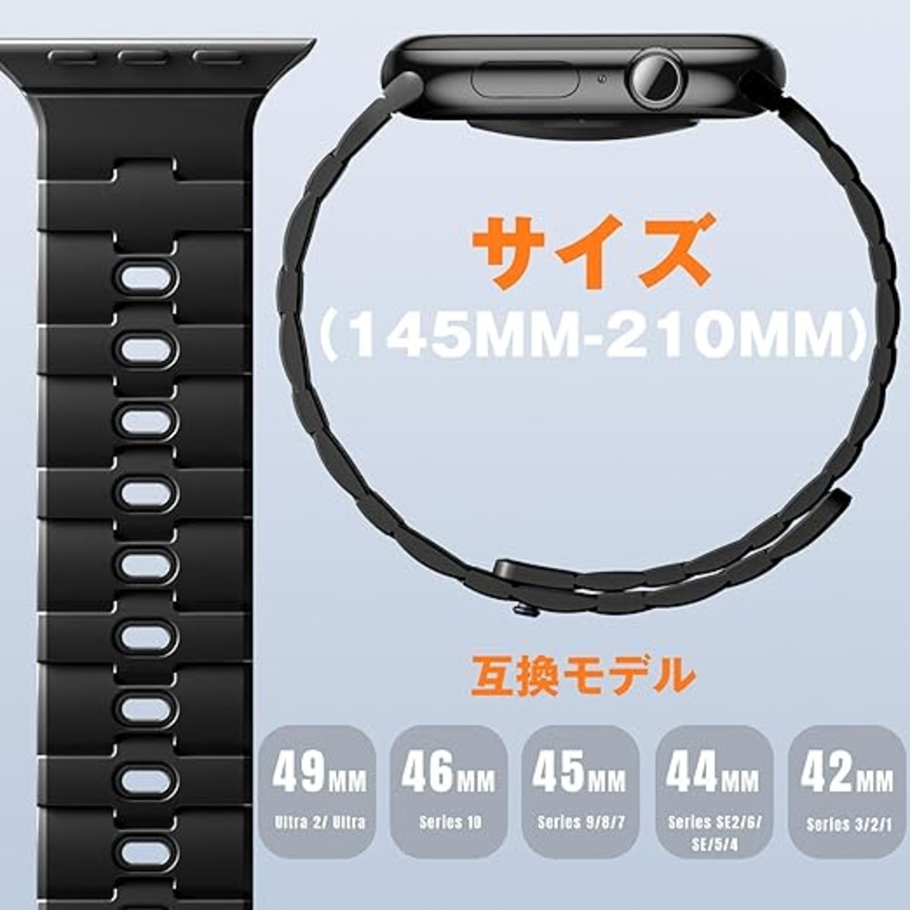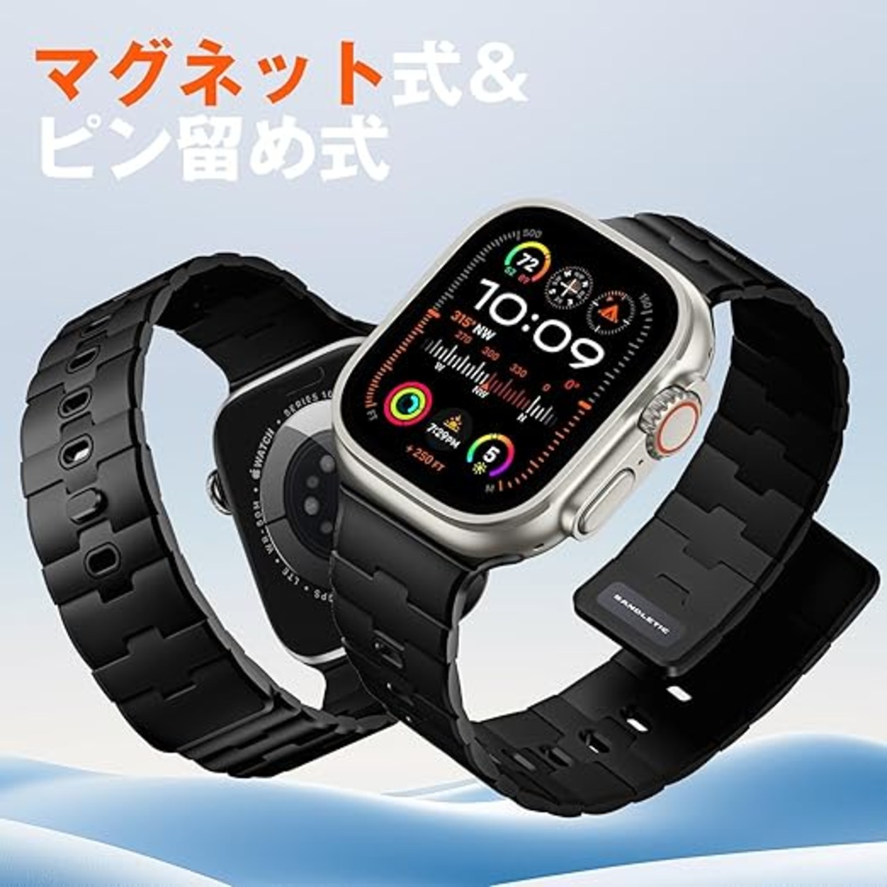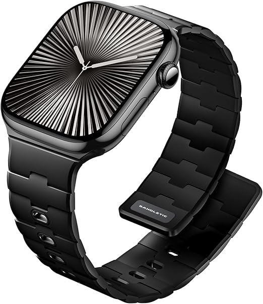 [Bandletic] アップルウォッチ用 マグネット式シリコンバンド - N54磁石バンド 対応38/40/41/42/44/45/46mm 男女兼用 スポーツ用 軽量 Series10/9/Ultra2/SE2/8/7/6/5/4/3/1用 ブラック a