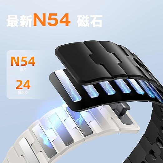 【最強級磁力】N52ネオジム磁石で完全フィット N42比20%強・N35比50%アップの磁力を実現。短ストラップに11個、長ストラップに14個の強化磁石を配置し、激しい運動中でも「外れない」確かな保持力。精密設計で手首にピタリと密着します。