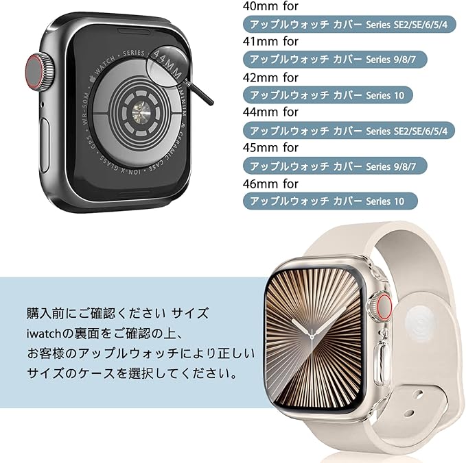 【対応機種】40mm専用のアップルウォッチカバー、 Apple Watch Series SE2/Series SE/Series 6/Series 5/Series 4 対応いたします。※ご購入する前に、まずはアップルウォッチ裏面で記載されたサイズをご確認してください。