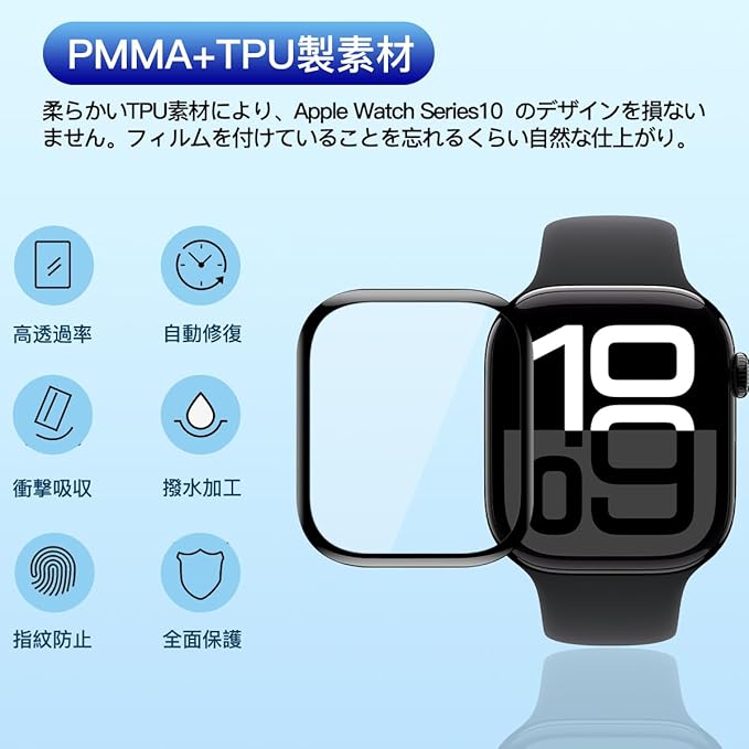 【超高品質&超薄型素材】このスマートウォッチ用ガラスフィルムは 対応 apple watch series 10 42mm 非常に柔らかいTPUをしており複合材 炭素繊維を採用、画面の端まで保護することができ超薄型0.26mm、スクリーンをタップする際にフィルムなしの場合よりもスムーズにスマートウォッチを操作できます。