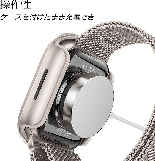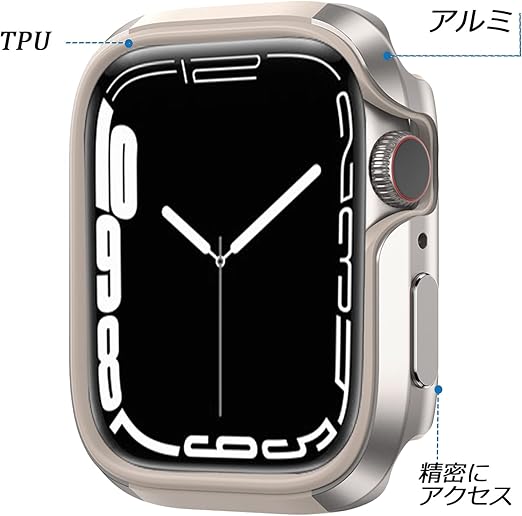 NINKI対応Apple Watch9 8 7ケース 45mm アルミ×TPU バンパー 2重構え 落下保護 脱着簡単 シンプル 四角保護 アップルウォッチ series9 8 7カバー(スターライト 45mm) a
