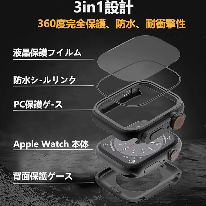AIYYXX アップルウォッチ カバー 40mm 41mm 42mm 44mm 45mm 46mm対応 数秒でUltra一体型 アップルウォッチ保護ケース+防水ゴムリング+背面ケースの3 in 1デザイン 360°防水 全面保護 耐衝撃 高透過率 装着簡単 apple watch カバー(Series 10,46mm,ブラック) a