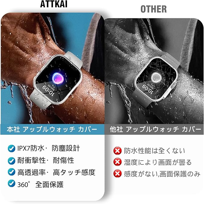 ?ATTKAI for アップルウォッチ カバー Series 10/9/8/7/6/5/4/SE2/SE for Apple Watch カバー 防水 一体型 PC素材 硬度9H強化ガラス 高透過率 指紋防止 超薄型 耐衝撃 全面保護 for Apple Watch ケース (40mm,クリア) a