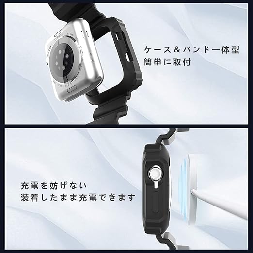 Apple Watch バンド アップルウォッチ バンド 一体型 スポーツバンド ケース カバー 耐衝撃 PC TPU ソフト 全面保護 iWatch Series SE/7/6/5/4/3/2/1 (42mm / 44mm /45mm 、38mm / 40mm /41mm) レディース・メンズ a