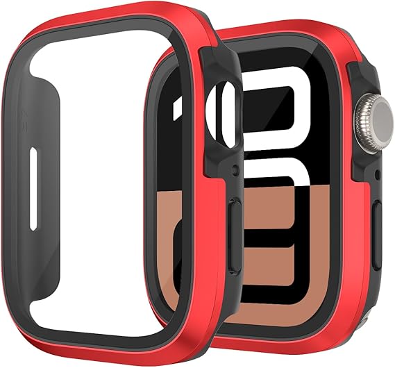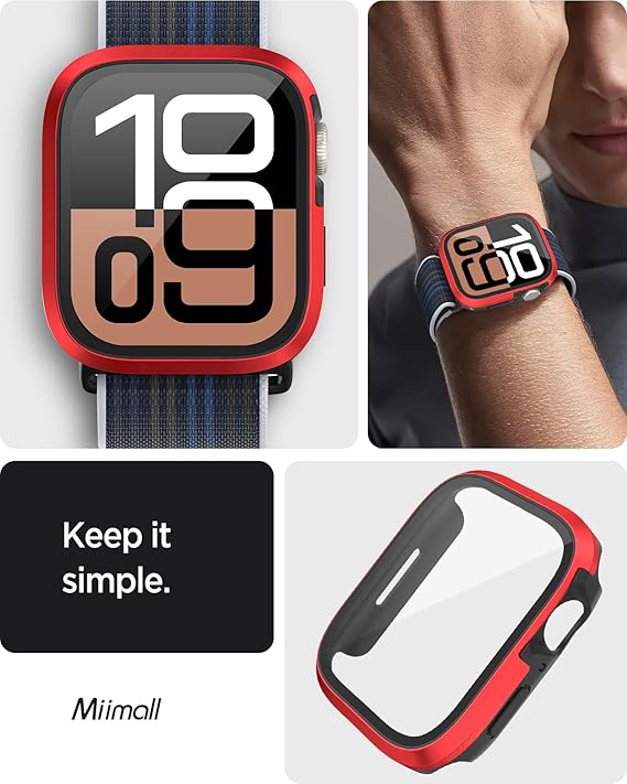 Miimall For apple watch 10 ケース 42mm 保護カバー+ガラスフィルム 一体型 保護フィルム アルミニウム素材 強化エッジタッチ 軽量 傷防止 耐衝撃 高感度 指紋防止 全面保護 対応 アップルウォッチ 10 42mm レッド a