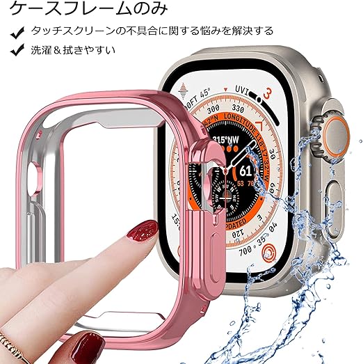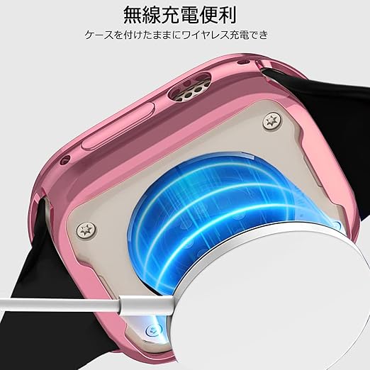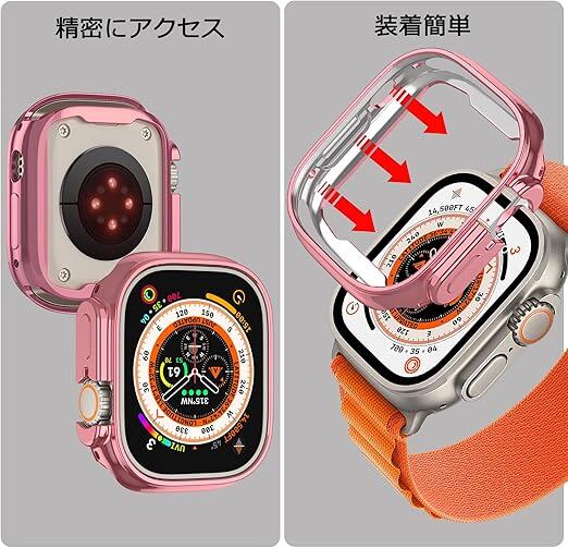 NINKIコンパチブル アップルウォッチ ウルトラ2/ウルトラ 49mm 用 ケース 耐衝撃 TPU メッキ加工 超薄型バンパー スクラッチ保護 取り付け便利 ワイヤレス充電 アップルウォッチ ウルトラ2/ウルトラ ケース(ローズピンク) a