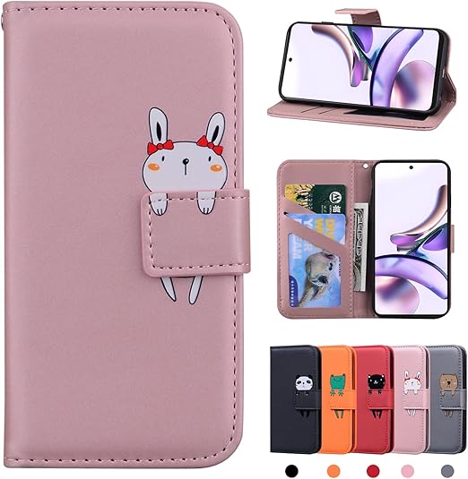 For Motorola Moto G13 ケース 手帳型 カバー スマホケース 人気 おしゃれ Moto G13 手帳型 ケース 高級PUレザー 全面保護 かわいい 動物柄 ノート型 Motorola Moto G13 用 ケース 手帳型 モトローラ モト G13 手帳 ケース Moto G13 用 手帳型 カバー 財布型 マグネット式 カード収納 スタンド機能 (6.5インチ)ピンクのバニー a