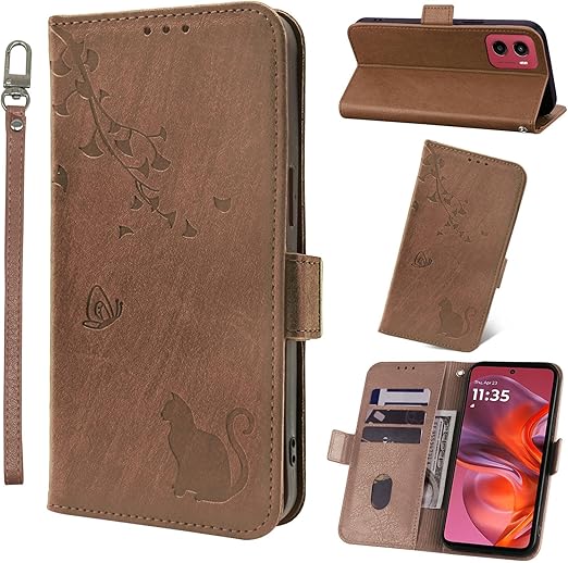 Motorola Moto G05 ケース 手帳型 モトローラg05 ケース 手帳型 財布型 モトローラモトG05スマホケース 携帯カバー Jajaful モトローラG05 手帳型ケース 耐衝撃 マグネット式 スタンド機能 カード収納 PUレザー 軽量 猫 ブラウン a