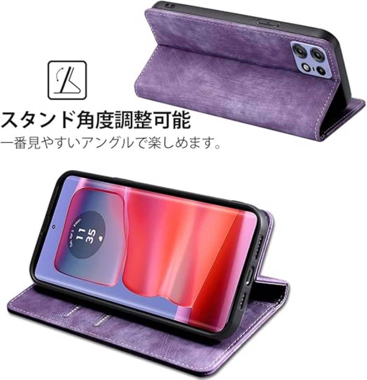 AiMaoo Motorola Moto Edge 50 Pro/Moto Edge 50s Pro 対応 ケース 防塵 耐衝撃 傷つけ防止 軽量 手作り PUレザー カード収納 RFID磁気防止 マグネット スタンド機能 ケース 手帳型 Motorola Moto Edge 50 Pro/Moto Edge 50s Pro 用 (パープル) a