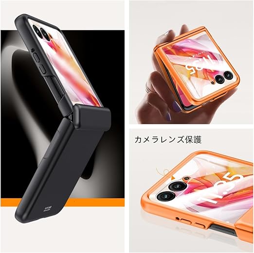 motorola razr 50s用ケース ヒンジ保護 razr 50d M-51E用ケース シンプル ハードケース 薄 耐衝撃 落下防止 moto razr 50用カバー(ブラック) a