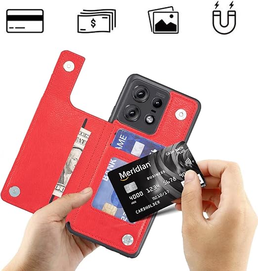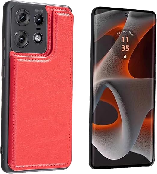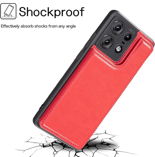 【Viesa】背面カード 手帳型ケース Moto Edge 50 Pro/Edge 50s Pro 対応 Motorola スマホ バックカバー ケース 手帳型 (レッド) 手作り 財布型 マグネット 薄 軽量 ポケット収納付き 背面カバー 手帳 横置きスタンド機能 背面型ケース モトローラ モト edge50プロ edge50pro RED a