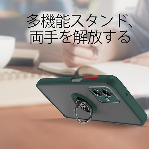 Anlalish携帯ケース For Moto G64 5G ケース透明 Motorola Moto G64y 5g スマホカバー リング 耐衝撃 シリコン人気 オシャレ車載ホルダー 対応 持っているカメラ保護 (濃い緑色) a