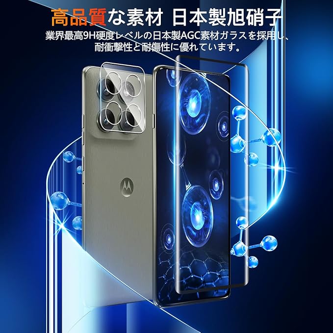 【飛散防止可能の9H硬度】 対応 モトローラ EDGE 60 Pro ガラスフィルムとレンズ保護フィルムはすべて旭硝子で作られており、スマホ保護フィルムの中で最高レベルの9H硬度に達しています。手にフィットして持ちやすく滑