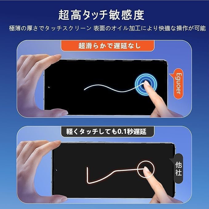 【9H硬度 飛散防止】高品質な日本製の旭硝子製、スマホ保護フィルムの中で最高レベルの9H硬度に達しています。手にフィットして持ちやすく滑りにくいので落ちにくいで