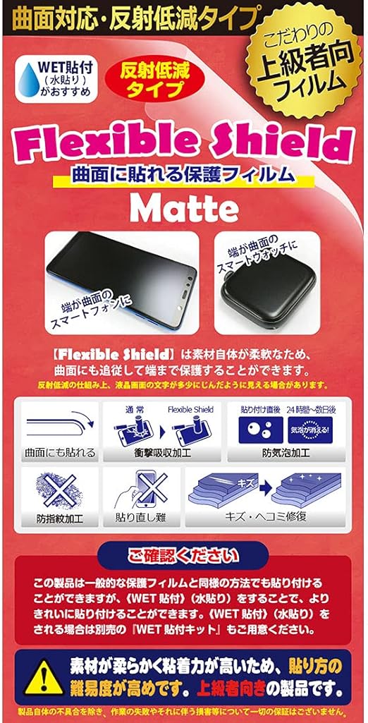 素材はTPU(熱可塑性ポリウレタン)を採用。一般的な保護フィルムでは貼りつかなかった曲面に対応し、機器の端までしっかりとカバーします。『曲面対応タイプ(非光沢)の保護フィルム』