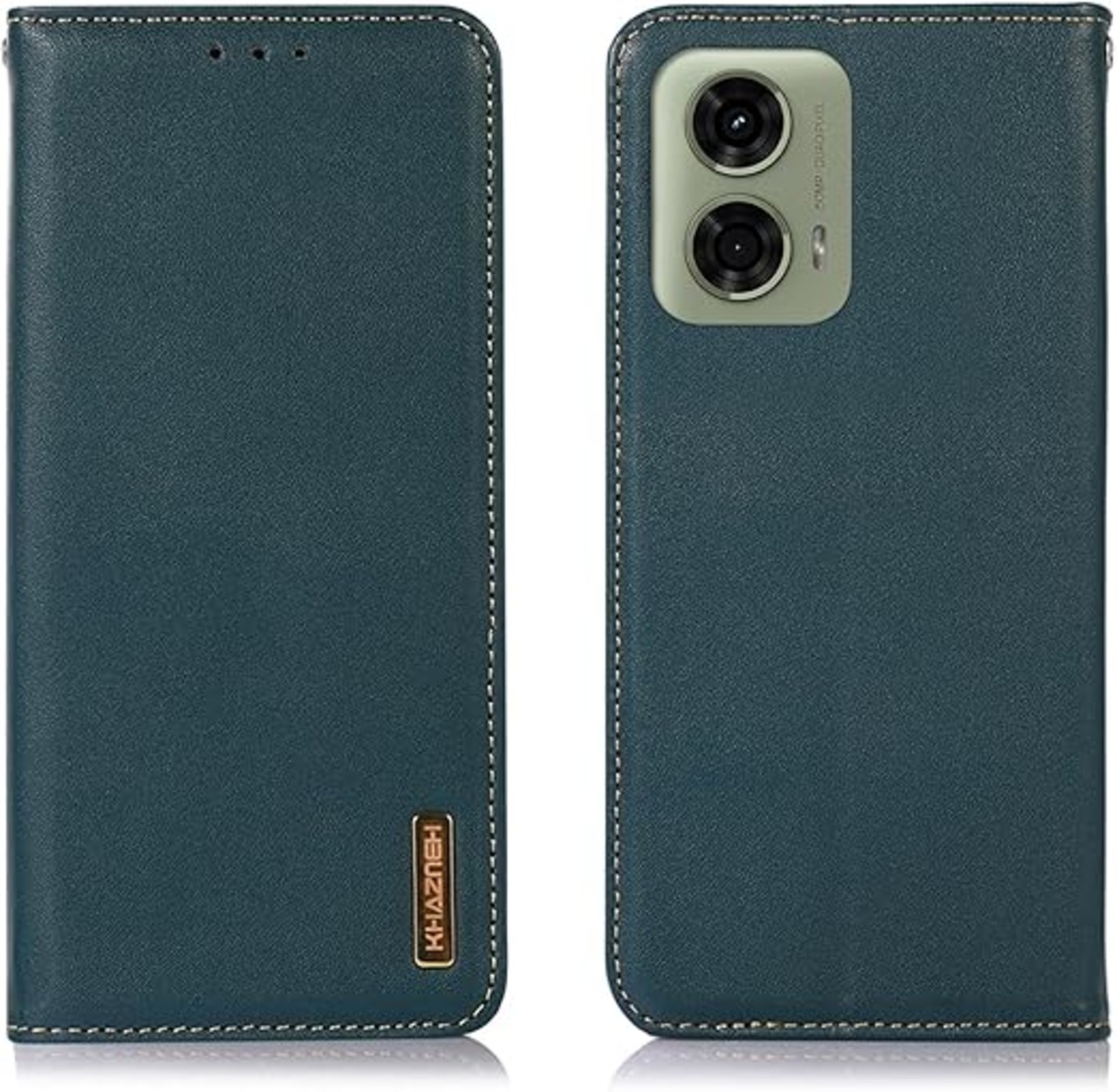 Motorola MOTO G24 ケース 手帳型 本革 モト g24 カバー 牛革 財布型 上質ナッパレザー 高級本皮 耐衝撃 マグネット式ボタン スピーカーホール付き カード収納 横置きスタンド機能 ストラップホール有り 耐摩擦 XJUN グリーン a