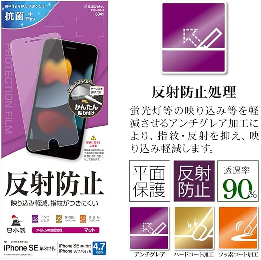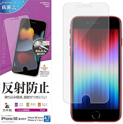 ラスタバナナ iPhone SE3 SE2 8 7 6s 6 共用 フィルム 平面保護 アンチグレア 反射防止 マット 日本製 貼り付けガイド アイフォン アイフォンse 第3世代 第2世代 保護フィルム T3314IP247 a