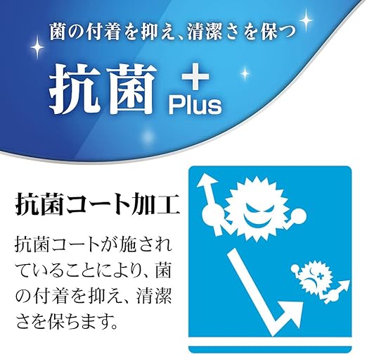 【抗菌コート加工】抗菌コートが施されている事により、菌の付着を抑え、清潔さを保ちます。