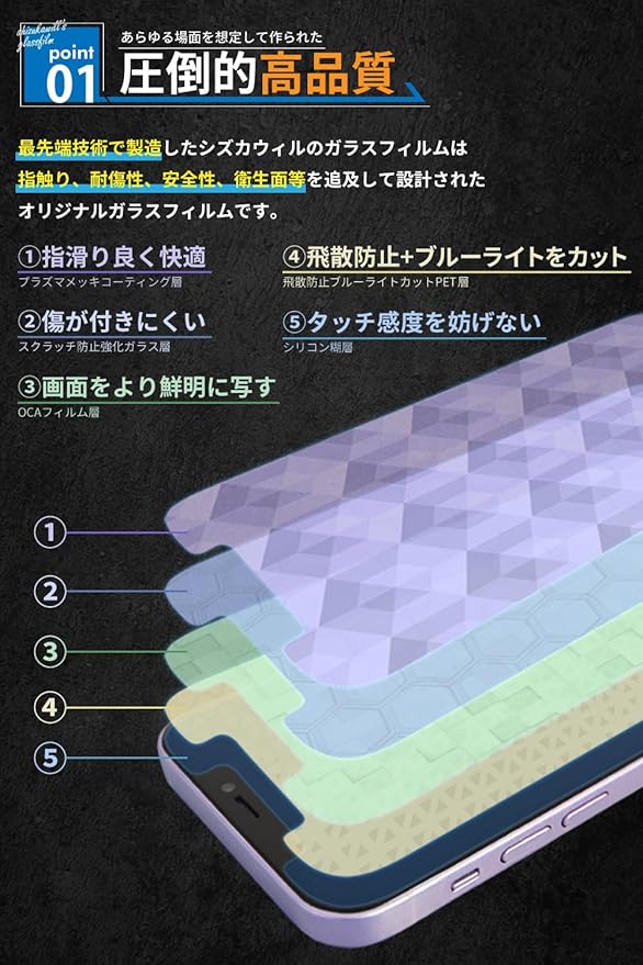 【誰でも使いやすい】ガラスフィルムの種類で迷ったらこれ!年齢や性別、職業に関係なく使いやすいスタンダードタイプ。リピーターに指示され続ける高品質ガラスフィルムで、スマートフォンを保護します