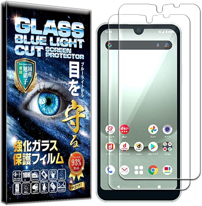 2枚 RISE ガラスフィルム フィルム ブルーライトカット 93% AQUOS Wish3/AQUOS wish2 SH-51C/AQUOS Wish SHG06/SH-M20/A104SH 用 保護フィルム 強化 ガラス 透過率99% 高光沢 日本製 旭硝子 硬度9H 2.5Dラウンドエッジ 自動吸着 気泡ゼロ 飛散防止 指紋防止 撥水撥油 3D タッチ For AQUOS Wish/Wish 2/3 a