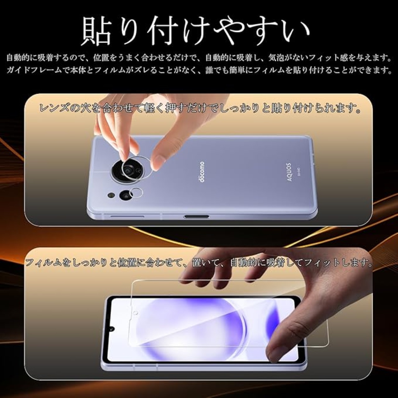 ★【対応機種】 AQUOS Sense8 SH-54D / SHG11 ガラスフィルム 2枚 + カメラフィルム 2枚。(機種の選択には間違いがないよう、ご注文前によくお確かめください。)