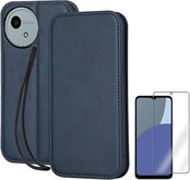 AQUOS Wish4 ケース 手帳型 wangChuan SH-52E スマホケース レザー カード収納 内蔵マグネット式(携帯ストラップ付き、ガラスフィルム付き)レトロネイビー a