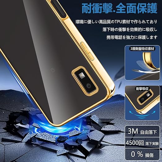 AQUOS wish3 ケース クリア ウィッシュ3 カバー 透明 スマホケース 耐衝撃 黄変防止 SH-53D A302SH SH-M25 A303SH 対応 TPU 保護カバー メッキ加工 ソフトケース 滑り止め 耐久性 ストラップホール付き アクオス ウィッシュ3 携帯ケース(ゴールド) a