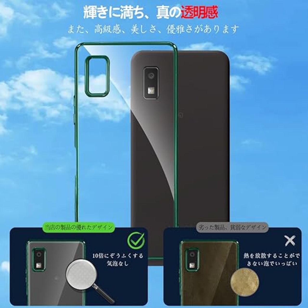 AQUOS wish3 ケース クリア ウィッシュ3 カバー 透明 スマホケース 耐衝撃 黄変防止 SH-53D A302SH SH-M25 A303SH 対応 TPU 保護カバー メッキ加工 ソフトケース 滑り止め 耐久性 ストラップホール付き アクオス ウィッシュ3 携帯ケース(ダークグリーン) a
