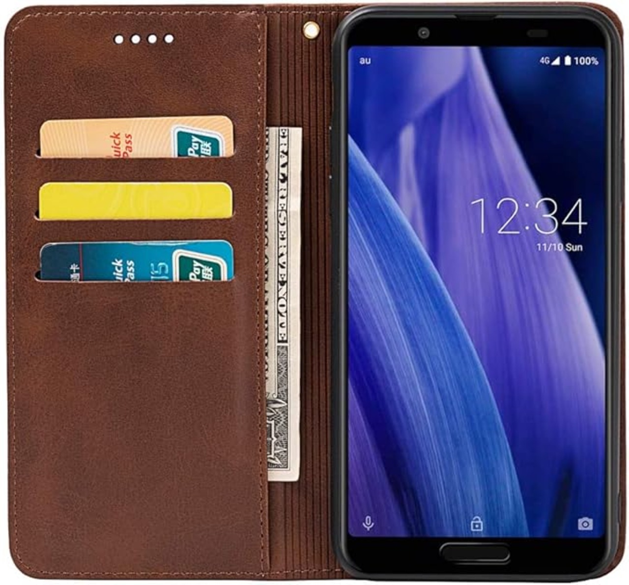 AQUOS sense3/sense3 lite/sense3 basic/Android One S7 ケース 手帳型 SH-M12/SHV45/SHV48/SH-02M 手帳型 ケース カバー PUレザー カード収納 財布型 耐衝撃 ケース マグネット スタンド機能付き 5色 (ダークブラウン) a