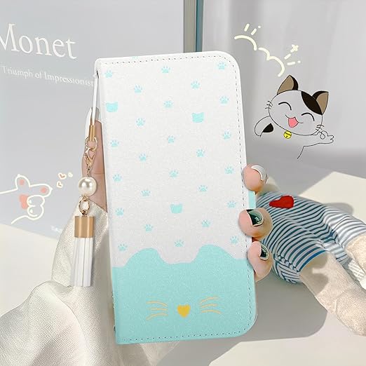 AQUOS wish3 ケース手帳型docomo SH-M25 SH-53D A302SH ケース アクオスwish3ケース wish3手帳型 ケース かわいい猫 チャーム な タッセル ストラップ付き人気 財布型 カード収納 アクオス ウィッシュ3ケース スマホケース (AQUOS wish3,グリーン) a