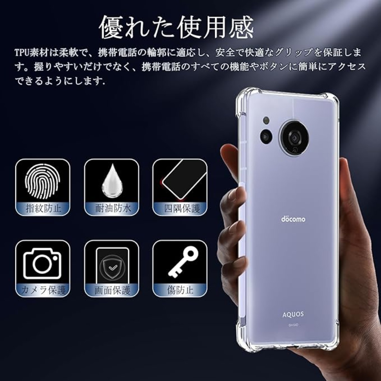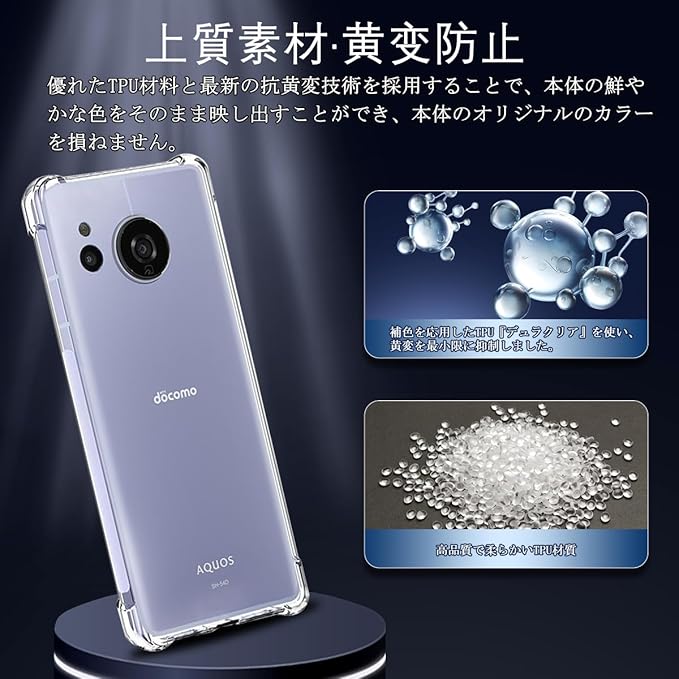 【対応機種・製品仕様】AQUOS Sense8 SH-54D SHG11 専用設計ですので、購入前に使用した携帯電話機の機種を必ず確認してください。売り上げは止まらない!熱は減らない!注文数は3万セットを超えた。この透明ケースのカットは AQUOS Sense8 スマートフォンによく合います。これは柔軟性と強度を兼ね備えた次世代の高品質TPU材料筐体であり、軽量、防掻き、抗黄変、柔軟な「転倒防止」、「指紋防止」、「高透明度」を備えている。などの特徴があり、保護が全面的なので、安心して購入してくだ