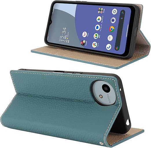 Eastwave Aquos Wish4 ケース 本革 牛革 SH-52E A402SH ケース 手帳型 カバー AQUOS WISH 4 SH-52E A402SH SH-M27 対応 手帳 本革 柔らかい 本皮 スプラットホール付き スプラット同梱 内蔵マグネット - ライトブルー a