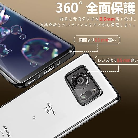 AQUOS R6 ケース SH-51B SH-M22 クリア 透明 ガバー スマホケース 耐衝撃 TPU 薄型 シリコン スリム 擦り傷防止 黄変防止 メッキ加工 ストラップホール付き(ブラック) a