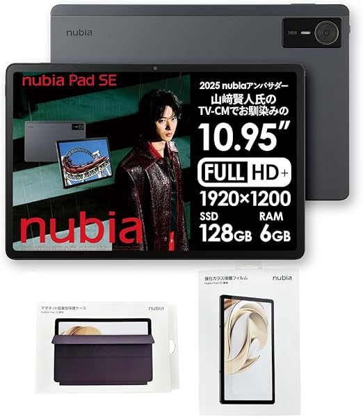 【山﨑賢人氏のTV-CMでお馴染みの】【2025年発売】アクセサリ同時購入セット【nubia Pad SE + 強化ガラス保護フィルム + マグネット吸着型保護ケース】11インチ タブレット Andoroidタブレット 超薄型 軽量 515g FHD 大画面 1,679万色 リフレッシュレート90Hz 4スピーカー カメラ 1,300万画素 7,510mAh バッテリー 急速充電 a