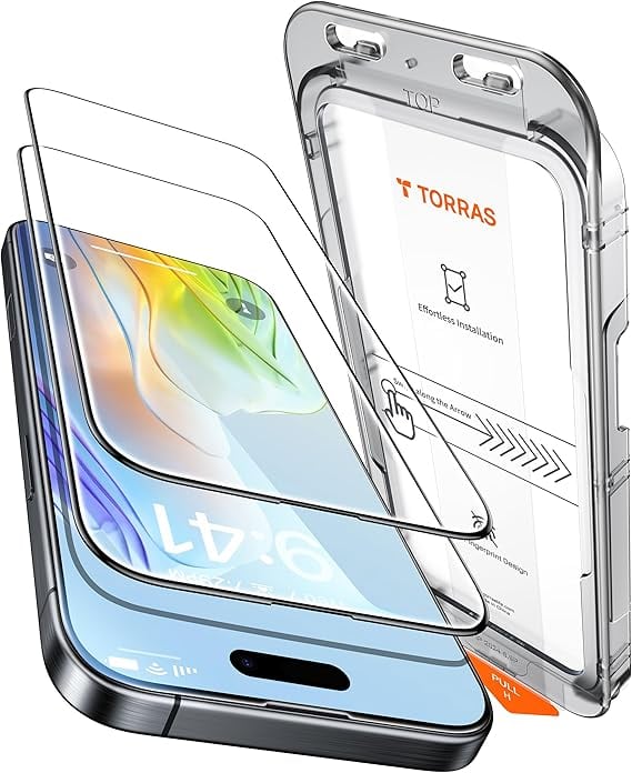 TORRAS iPhone 16 Pro 専用 ガラスフィルム 全面保護 「米軍規格・隅々まで全面保護」指紋防止 強化極細黒縁 9H越え 新型枠付き 貼り付け簡単 さらさら 2枚セット 2024 6.3インチ 干渉しない アイフォン16Pro 用 保護フィルム GlassGo Air a
